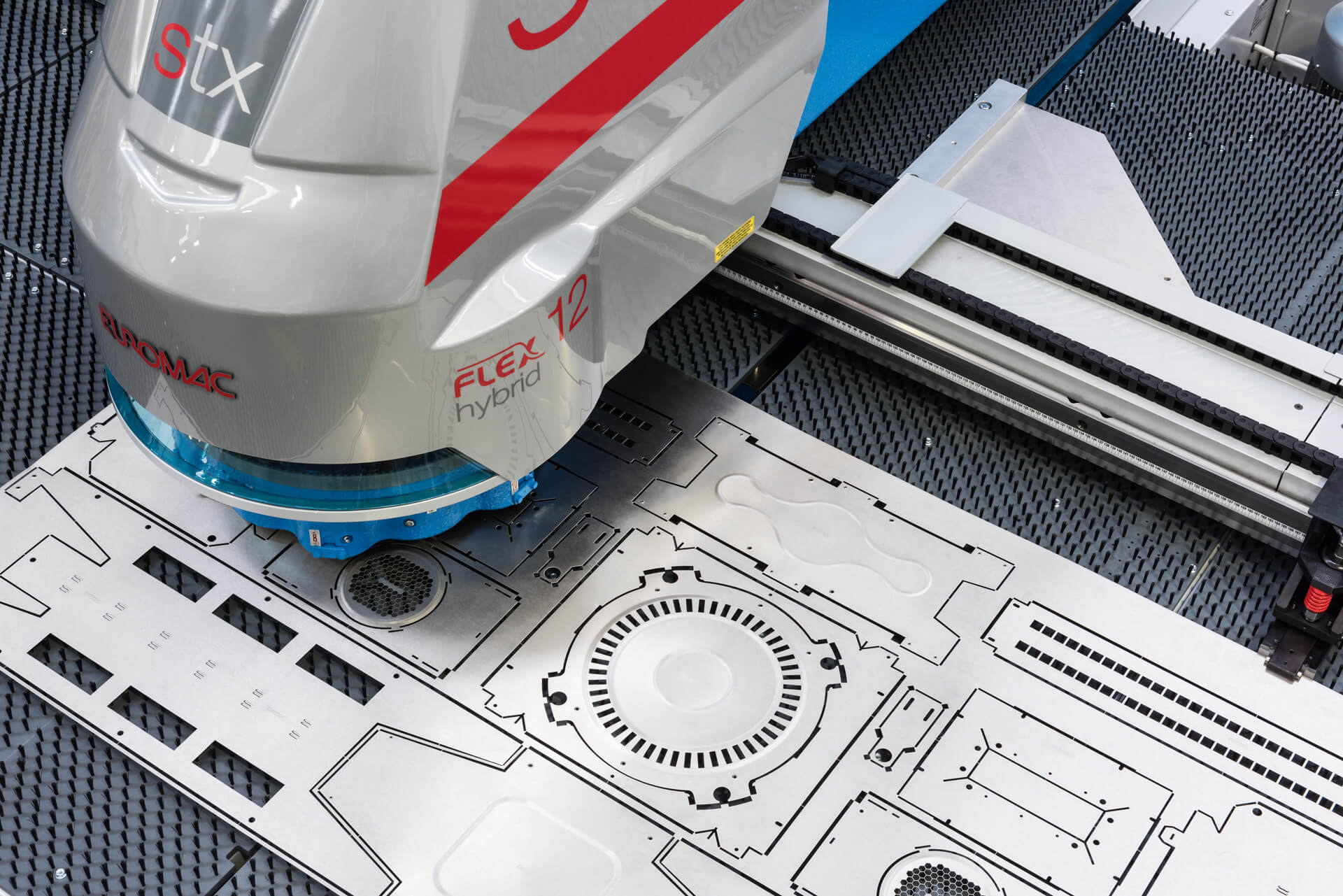מכונות הניקוב של EUROMAC מצוידות במערכת פטיש מתקדמת (HYBRID FLEX) שמשלבת מערכת הידראולית (לקבלת כוח ניקוב) וחשמלית (כיוון גובה, מהירות ומהלך הפטיש).